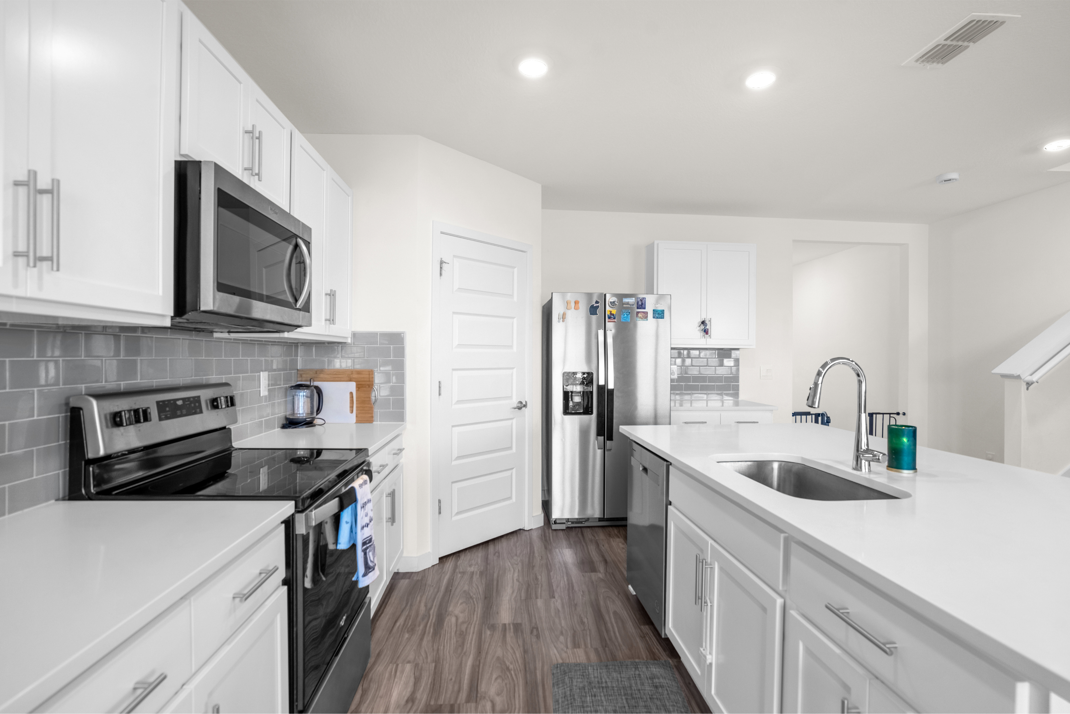 Electrodomésticos   lavavajillas, triturador de basura, microondas, cocina, refrigerador.