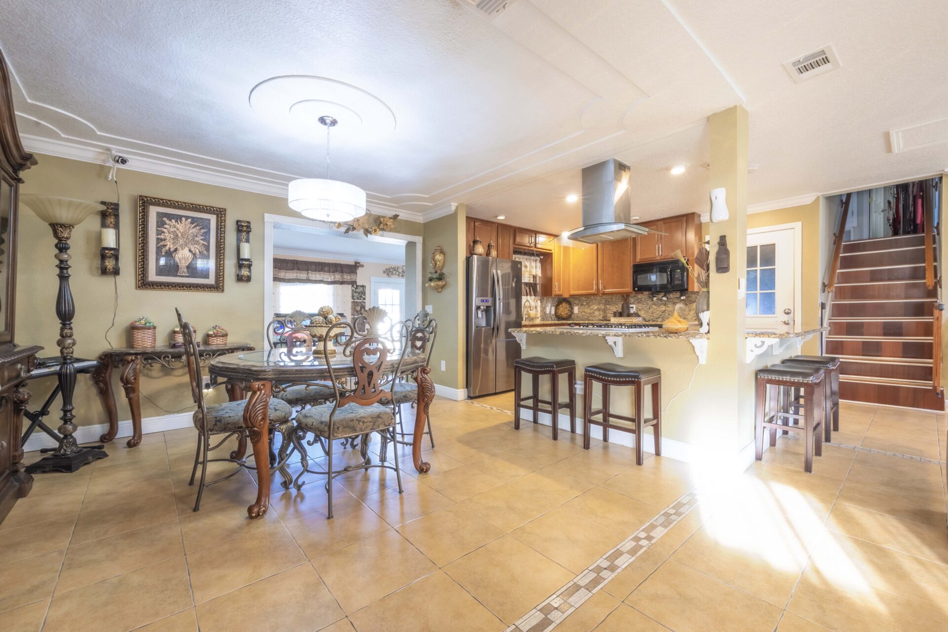 El área de concepto abierto es un sueño, con una espectacular cocina gourmet equipada con estufa a gas, un nuevo extractor y electrodomésticos de alta calidad. La propiedad cuenta con detalles únicos como molduras decorativas, ventiladores retráctiles, luces empotradas, techos con bandejas y rodapiés de 7 pulgadas, aportando un estilo elegante y sofisticado. También ha sido recientemente pintada en 2023.