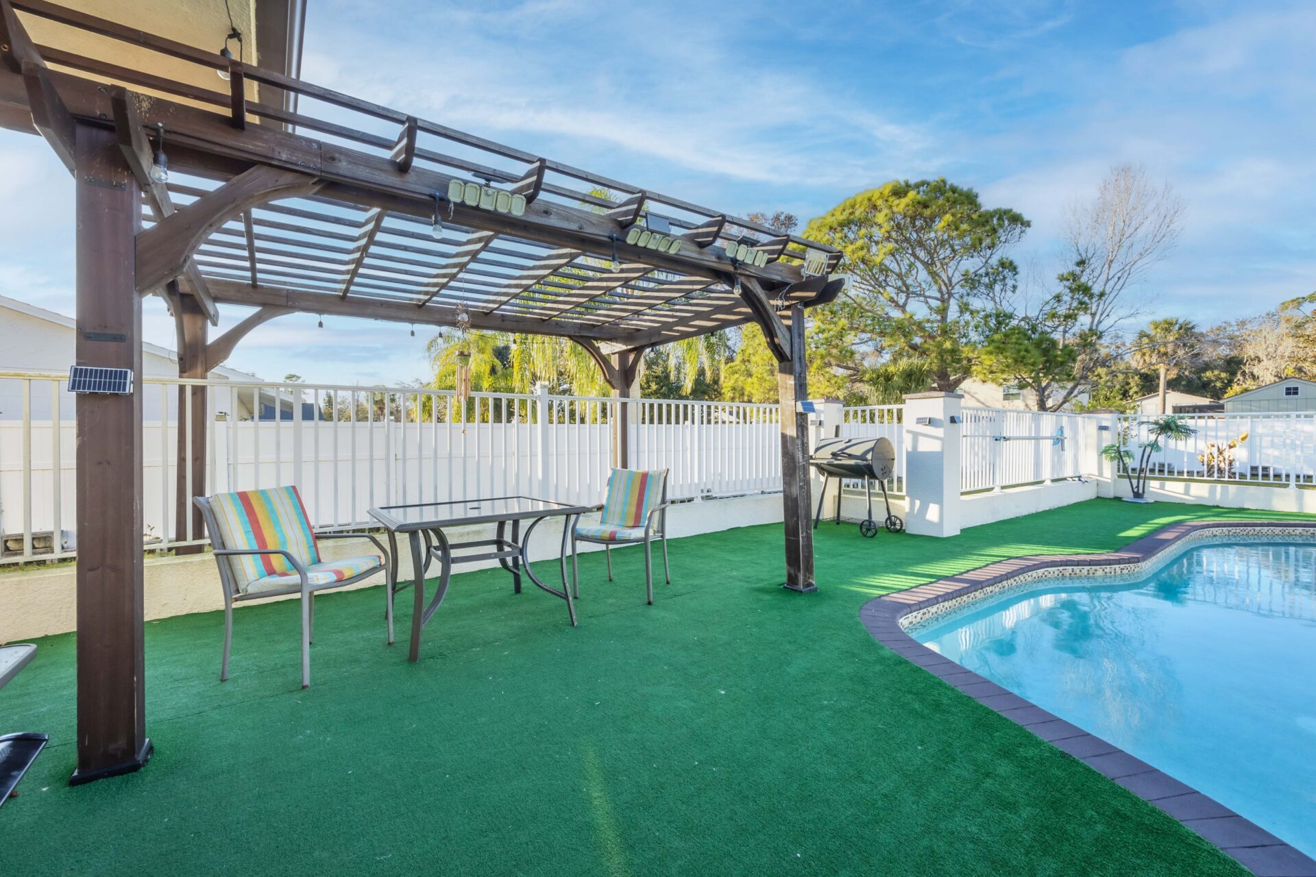 En el exterior, disfrutarás de un oasis privado con una impresionante piscina, una lujosa ducha exterior y un patio completamente cercado, ideal para reuniones familiares o fines de semana con amigos disfrutando de un asado o viendo deportes.
